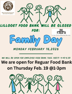 Lillooet Food Bank – Closed for FAMILY DAY!